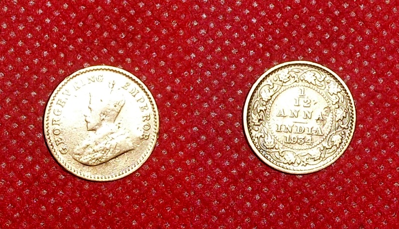 KING GEORGE V 1/12 ANNA AD 1934 CALCUTTA MINT BEST CONDITION
