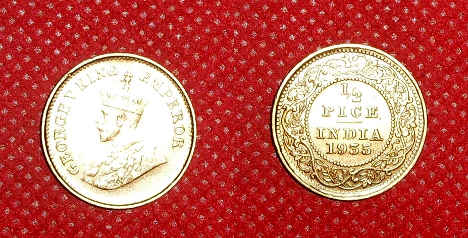 KING GEORGE V 1/2 PICE AD 1935 CALCUTTA MINT BEST CONDITION