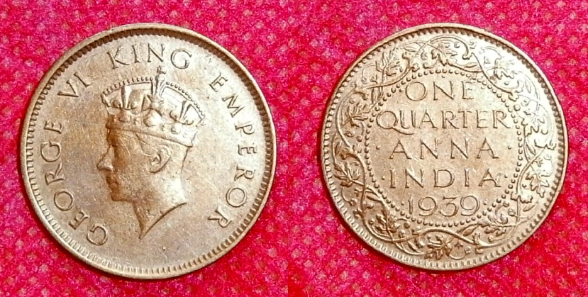 KING GEORGE VI 1/4 ANNA AD 1939 EXCELLENT CONDITION