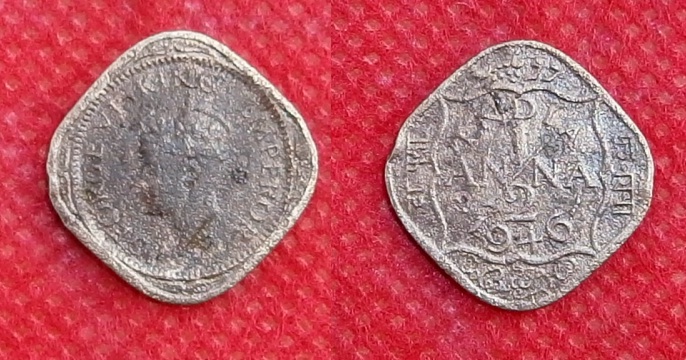 KING GEORGE VI 1/2 ANNA AD 1946 EXCELLENT CONDITION