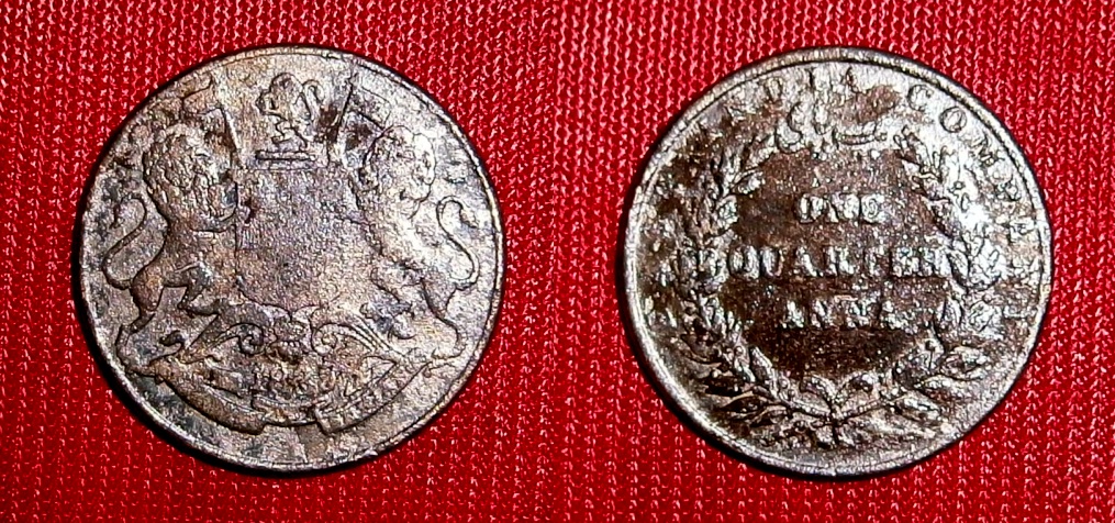 EAST INDIA COMPANY 1/4 ANNA AD 1835 EXCELLENT CONDITION