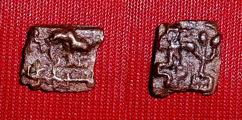 ANCIENT CAST COPPER WITH ELEPHANT,TORION, SWASTIK AND THREE ARCHED HILL