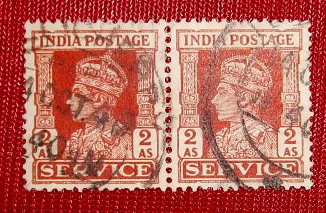 BRIRISH INDIA – KING GEORGE VI 2 ANNAS SERVICE STAMP SET OF 2 ORANGE COLOUR