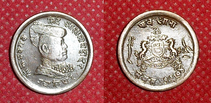 GWALIOR STATE - KING MADHO RAO 1/4 ANNA AD 1886-1925 TOP CLASS CONDITION PORTRAI