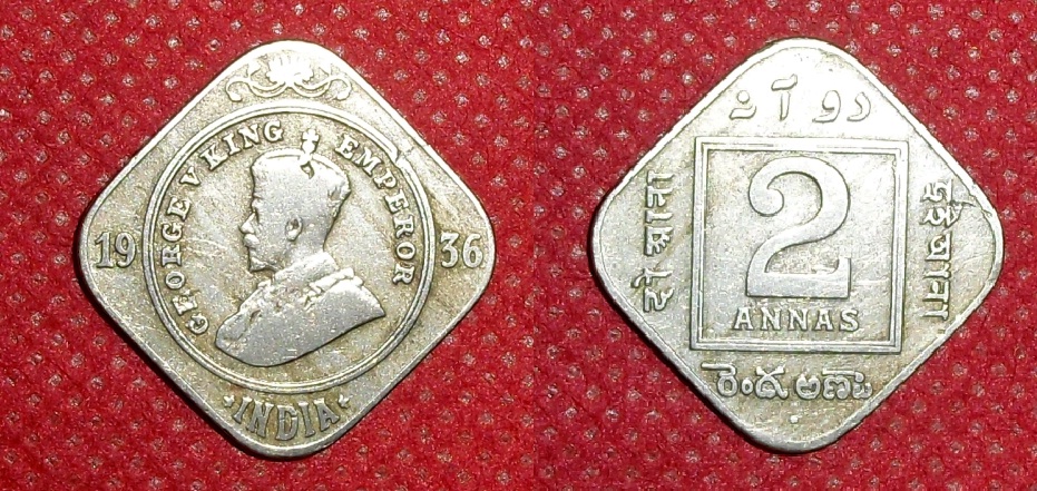 KING GEORGE V 2 ANNAS AD 1936 GOOD CONDITION