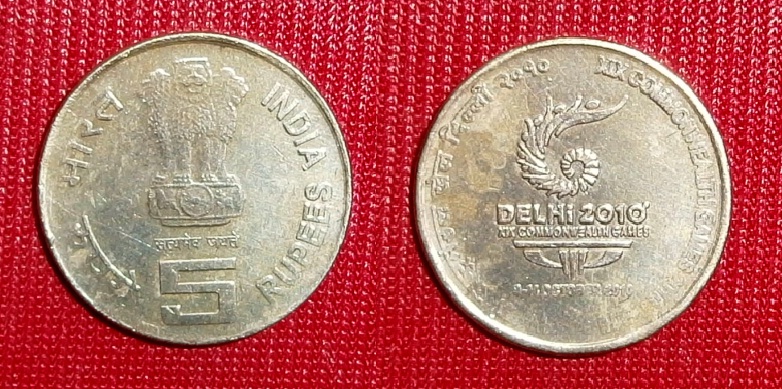 REPUBLIC INDIA – 5 RUPEES “COMMON WEALTH GAMES” DELHI 2010, HINDI ALPHABET “MARAT” INSTEAD OF “BHARAT”