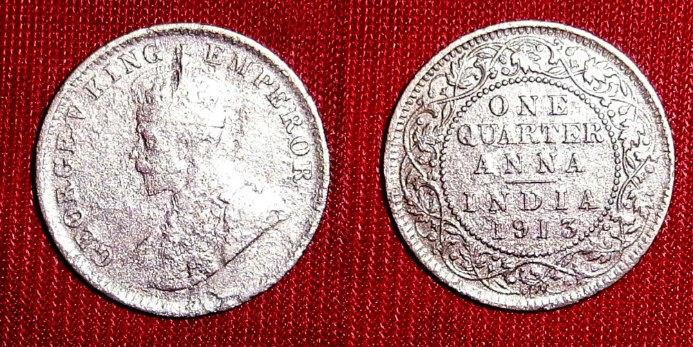 KING GEORGE V 1/4 ANNA AD 1913 CALCUTTA MINT