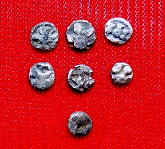 Ancient India, Mauryan ,Silver Punch Mark Coins “Mashaka”Lot of 7.Coins