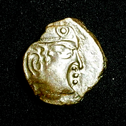 bust facing to right and Rev. Fire alter in center and Brahmi legend round the